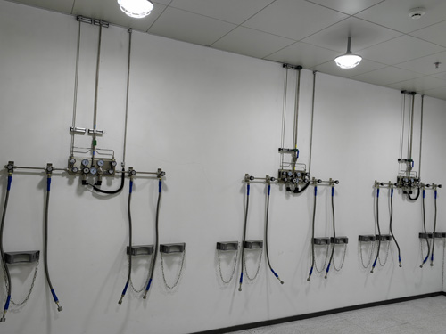 3.5N氫氣、氦氣、留出足夠的氣領導線用OD1/4”(6.35mm)的管道網網,支線用OD1/4”(6.35mm)的管道網網。用焊三通管拆成支路來對設施設備確定供汽。
